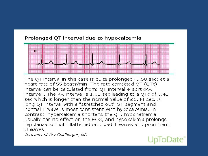 Treatment of hypocalcemia • IV calcium : - acute symptomatic pts - asymptomatic hypocalcemia with acute decreases to ≤ 7. 5 mg/d. L • 1 - 2 g of calcium gluconate ( 90 - 180 mg elemental calcium) in 50 m. L of 5 % D over 10 - 20 minutes • iv solution: 100 m. L (10 amp) of 10 % calcium gluconate in 1000 m. L of 5 % dextrose in water, at 50 m. L/h