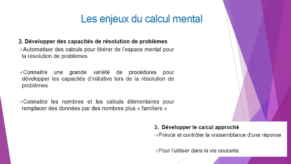 Calcul en ligne et mental : les enjeux construire puis travailler la compréhension de la notion de nombre et des propriétés de notre numération décimale de position ; développer la connaissance des nombres ; travailler le sens des opérations ; découvrir et utiliser les propriétés des opérations ; développer des habiletés calculatoires ;