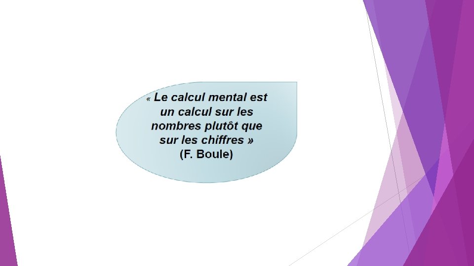 Définitions : Le calcul mental C’est une modalité de calcul sans recours à l’écrit si ce n’est, éventuellement, pour l’énoncé proposé par l’enseignant et la réponse fournie par l’élève. Il n’est pas exclu non plus que la correction, elle, soit écrite pour être discutée de façon collective.