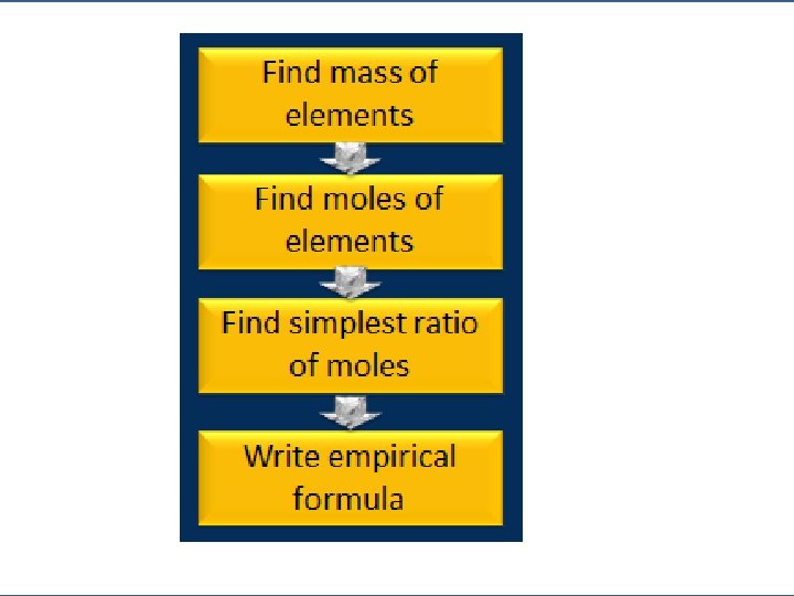 Example: A compound composed of: . 556 g carbon (C) and. 0933 g hydrogen (H). Find the molecular formula given that the molecule has molar mass of 42 g/mol Factor = Molecular mass Empirical mass Molecular formula = Factor x Empirical formula