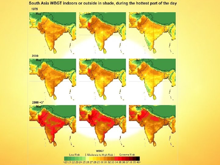 Add radiation= WBGT index • WBGT(indoor) = 0. 7 Tnwb + 0. 3 Ta • WBGT(outdoor) = 0. 7 Tnwb + 0. 2 Tg + 0. 1 Ta