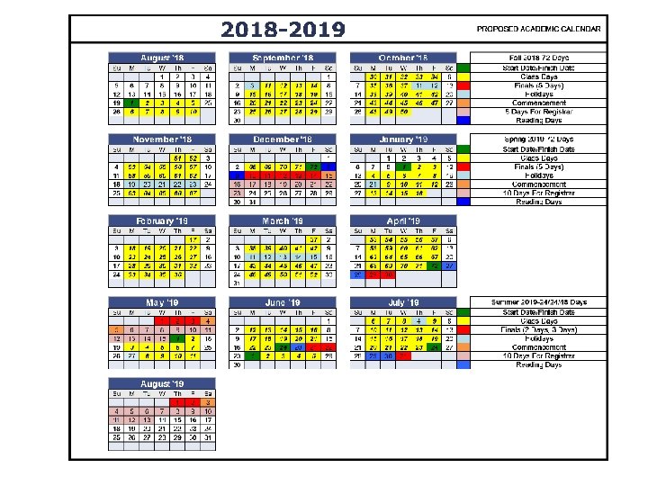 Proposal for 2018 -2019 Academic Calendar