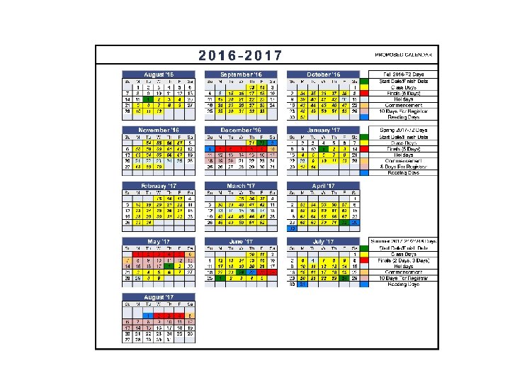 Calendar and Schedules Committee Proposal for Calendar Academic 2016 -2017