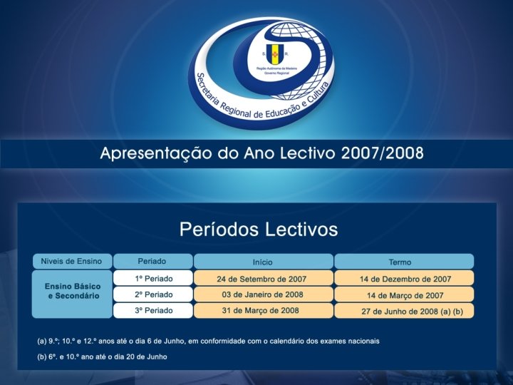Calendário Escolar Creches e Jardins-de-Infância: entre 5 e 7 de Setembro Pré-Escolar: 10 de Setembro (adaptação) e 17 de Setembro Ensino Básico e Secundário: 24 de Setembro