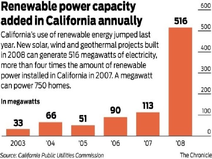 33 % RENEWABLES BY 2020 CALIFORNIAS GREEN AGENDA FOR ITS 37 MILLION RESIDENTS 1. REDUCE ENERGY CONSUMPTION – CONSERVATION 2. INCREASE THE EFFICIENT USE OF ENERGY 3. EXPAND THE USE OF RENEWABLE RESOURCES 4. CUT GHG (GREEHOUSE GAS) EMISSIONS