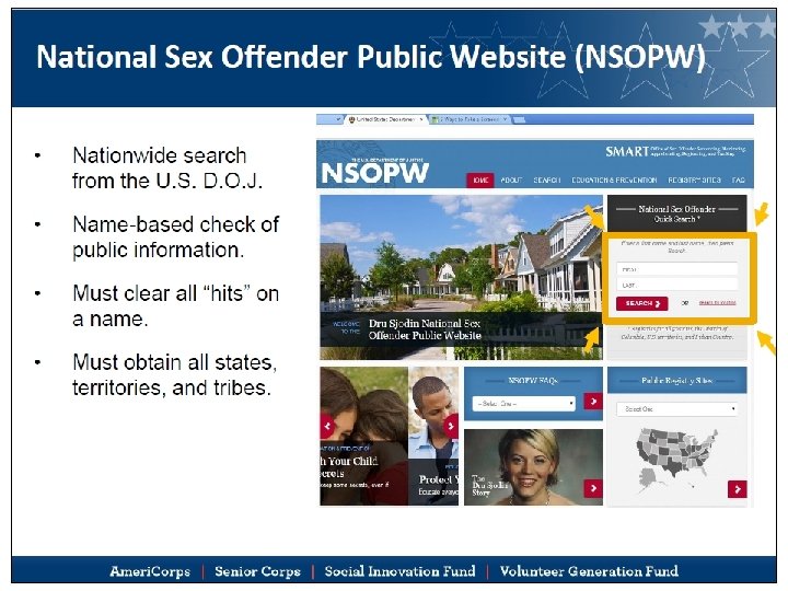 Source of Checks NSOPW. gov The only CNCS-approved source covering ALL sex offenses 15