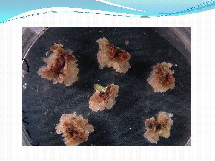 Development Of Aseptic Callus Cultures �EXPLANTS : Juvenile tissues, seedlings , young shoots , buds , root tips, developing embryos: fruits, floral parts, tubers and bulbs. �CULTURE MEDIUM : �Media: MS �Hormonal balance: Auxin : Cytokinin = 1 �Carbon source : sucrose (3% w/v ) �ph = 5. 6 -6. 0, optimum 5. 8 �Gelling agent
