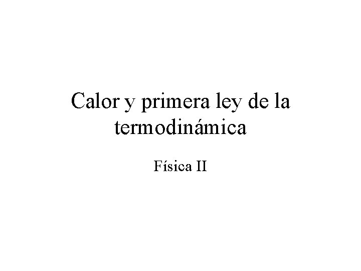 La primera ley de la termodinámica establece que el cambio en la energía interna de un sistema es igual al trabajo realizado por el sistema sobre sus alrededores, con signo negativo, más el calor hacia el sistema: DU = UB - UA = - WA B + QA B Esta ley es la ley de la conservación de la energía para la termodinámica. Para cambios infinitesimales la primera ley es: d. U = -d. W + d. Q Si la cantidad Q – W se mide para diferentes trayectorias, se encuentra que esta depende solo de los estados inicial y final.