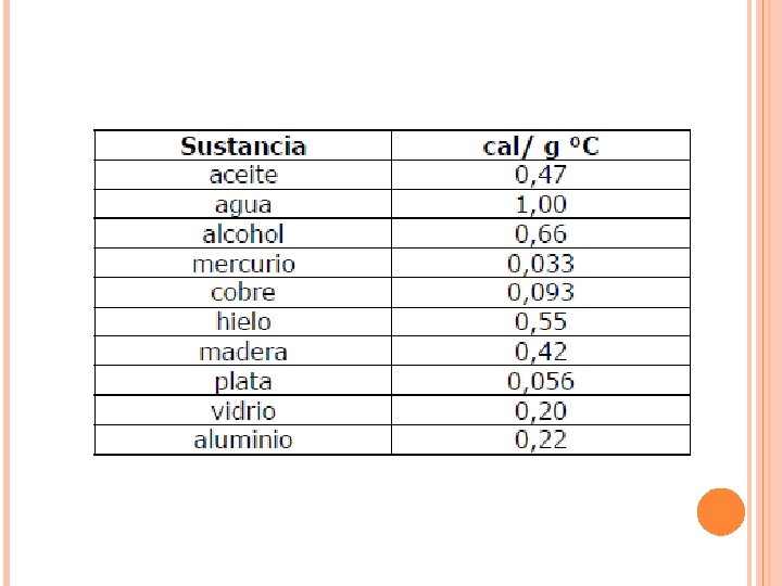 CALOR ESPECÍFICO El calor específico corresponde a la capacidad calórica por unidad de masa de una sustancia, es decir, el calor específico “c” representa la energía necesaria para que una unidad de masa “m” de una sustancia aumente su temperatura en un grado Celsius (o Kelvin) sin cambiar de estado.