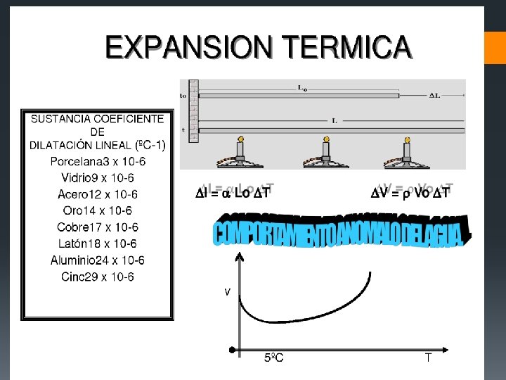 EXPANSIÓN TERMICA § La expansión térmica es el incremento en el volumen de un material a medida que aumenta su temperatura; por lo general, se expresa como un cambio fraccionario en las medidas por unidad de cambio de temperatura. Cuando el material es sólido, la expansión térmica se describe en términos de cambio de longitud, altura o grosor. Si el material es líquido, por lo general se describe como un cambio de volumen. Debido a que las fuerzas de unión entre átomos y moléculas varían de material a material, los coeficientes de expansión son característicos de los elementos y compuestos. Los metales más suaves tienen un coeficiente de expansión (CTE) alto; por otra parte, los materiales más duros, como el tungsteno, tienen un CTE bajo. La incompatibilidad de CTE entre dos piezas de trabajo puede generar una tensión residual importante en la unión, la cual, al combinarla con la tensión aplicada, puede causar fallas ante una menor resistencia a la tracción.