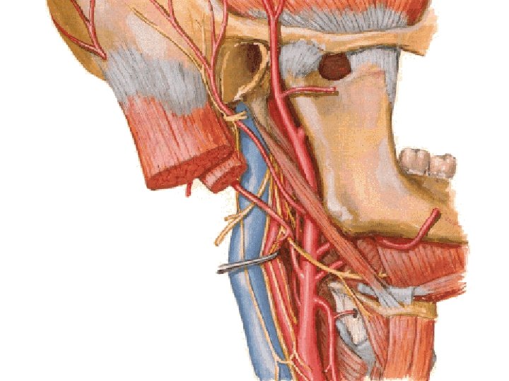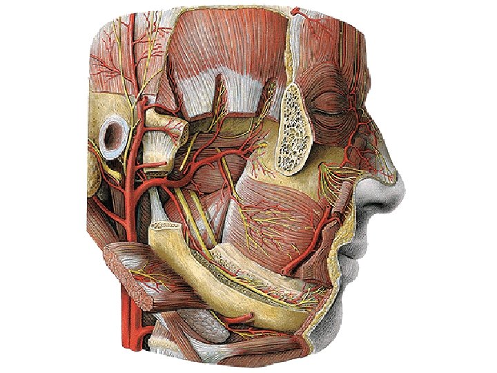 N. et vasa supraorbitalia N. et vasa supratrochlearia N. zygomaticotemporalis Vasa temporalia spf. N. auriculotemporalis Vasa auricularia post. Vasa occipitalia N. occipitalis major N. occipitalis minor N. occipitalis tertius N. auricularis magnus CN VII Nll. parotidei Nll. retroauriculares Nll. occipitales