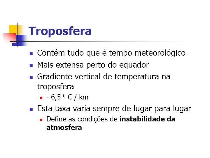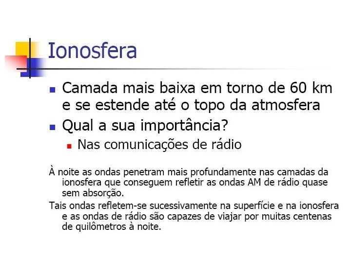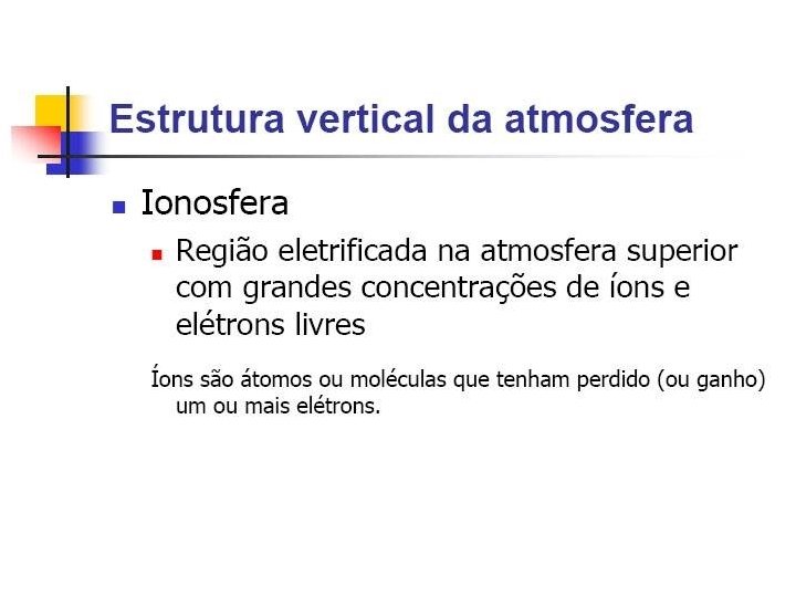 Camada mais externa da atmosfera O campo gravitacional mantém a atmosfera presa ao planeta