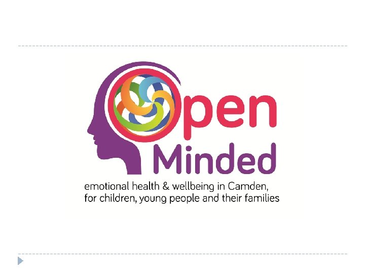 Camden CAMHS North Camden Community CAMHS – “Tier 2/3” South Camden Community CAMHS – “Tier 2/3” Under 5’s Service Brandon Centre Royal Free Hospital CAMHS (Eating Disorders, ADHD) MOSAIC CAMHS (Disability) Camden MALT (Child Protection and Looked After Children) EIS (1 st Onset Psychosis) IEYS (Children’s Centres) YOT (Offending) Special Schools and Pupil Referral Units Refugee Team (Tavi) Fostering and Adoption and Kinship Care Team (Tavi) Daytime duty cover at Tavistock Out of hours 24/7 on call psychiatry rota to A&E Access to inpatient Adolescent Units – Acute and Medium Stay