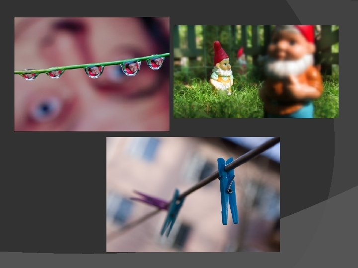 Shallow focus uses a small depth of field. � In shallow focus one plane of the image is in focus while the rest is out of focus. �
