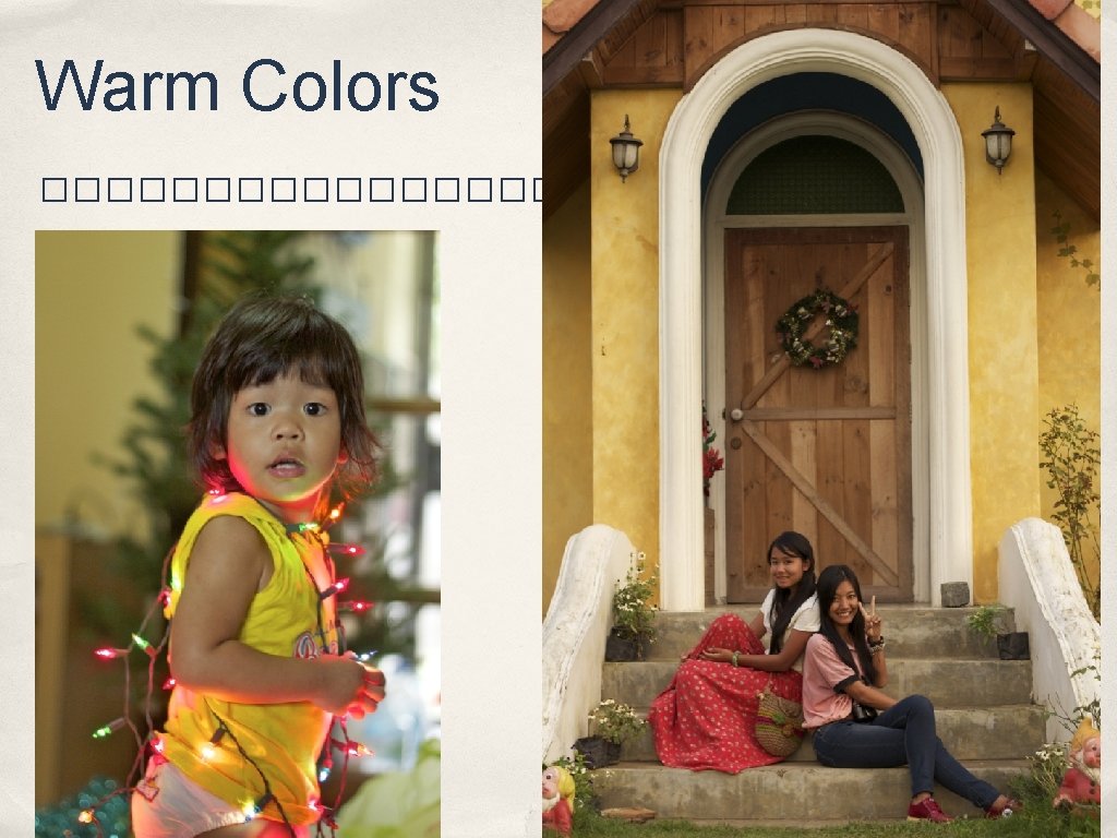 Practice ������ Shoot examples of: • Rule of 1/3 rds • Warm & Cool Color • Complementary Color • Monochrome Color • Depth of Field • • ������� : • ����� ��� 1/3 • • ���������� • • ���������� • ���� Leading Lines Symmetry/Pattern Textures Reflections • • Perspective Scale Balance Framing ���� • ������ /������ • ����������� • ����
