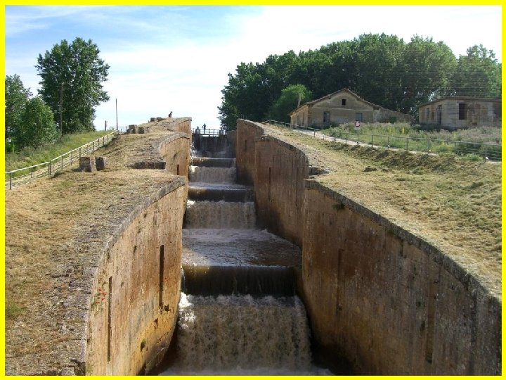 Para salvar los desniveles se construyeron 49 esclusas, los cuales hoy en día se están recuperando para su aprovechamiento turístico. Ya que hoy en día diversas barcazas recorren el canal con tal fin. Anteriormente, como la función para la que fue concebido el canal fue sustituida por la llegada del ferrocarril, este se destinó finalmente para riego agrícola.