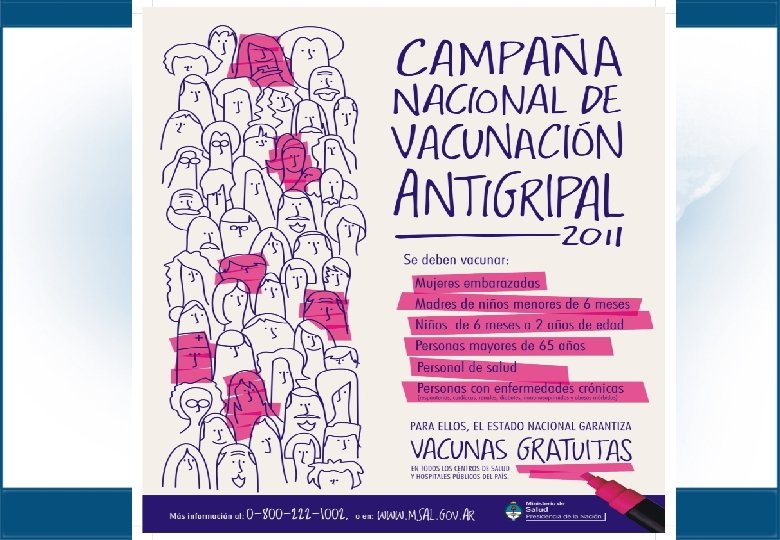DESAFIOS • Mantener los logros alcanzados durante 2010 • Trabajo multidisciplinario para obtener un enfoque integral de las enfermedades respiratorias más allá de la pandemia • Acceso oportuno a la vacuna como una herramienta del Plan Integral • Componente de comunicación social: involucrar a la sociedad, personal de salud y medios de comunicación con el concepto “responsabilidad de todos” • Trabajo en conjunto y permanente con sociedades científicas/ líderes de opinión/ académicos/ ONGs • Dar respuesta en tiempo y forma a las diferentes situaciones que puedan surgir.