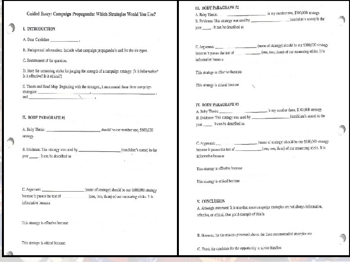 Remember the Analytical Question…. Campaign Propaganda: Which Strategies Would You Use? Remember we are asking… 1. Would you use it? 2. Is it informative? 3. Is it effective? 4. Is it ethical?