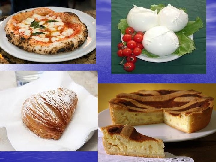 • panorra (Benevento e alto casertano) • pasta e fagioli • pasta e ceci tipico della provincia di Benevento, Napoli e dell'alta • • • • • provincia di Caserta pastiera (Napoli) parmigiana di melanzane (Napoli) polpi 'alla luciana' (Napoli) pasta e faglioli con le cozze (Napoli) pizza chiena (ossia pizza piena, una specialità di Cannalonga) (Salerno) prosciutto e mozzarella sanguinaccio (Caserta) spaghetti alle vongole (Napoli) spaghetti aglio e olio (Napoli) spaghetti allo scoglio (Napoli) sfogliatella (Salerno e costiera amalfitana, Napoli) Struffoli(Napoli) struppolo (Benevento) taddi e fave minestra tipica del Cilento minestra di cocozza longa (Lagenaria longissima), tipica del Cilento zeppole (Benevento)