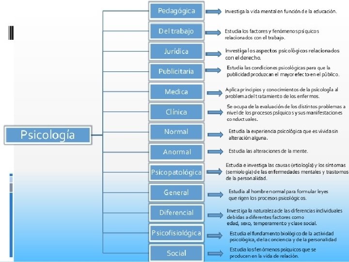 Definición • La psicología se encarga de estudiar científicamente la conducta humana y los procesos mentales. Son varias las distintas subdisciplinas de la psicología que centran su enfoque en algún aspecto particular de la psique humana, con el fin de entender mejor nuestra conducta y proporcionar herramientas para mejorar el bienestar de cada individuo.