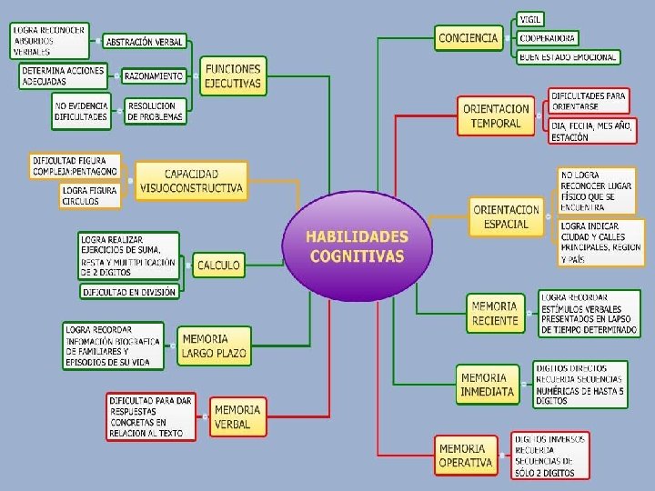 Habilidades cognitivas • El desarrollo cognitivo está relacionado con el conocimiento: es el proceso por el cual vamos aprendiendo a utilizar la memoria, el lenguaje, la percepción, la resolución de problemas y la planificación, por ejemplo. Involucra funciones sofisticadas y únicas en cada ser humano y se aprende a través del aprendizaje y la experiencia.