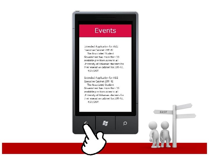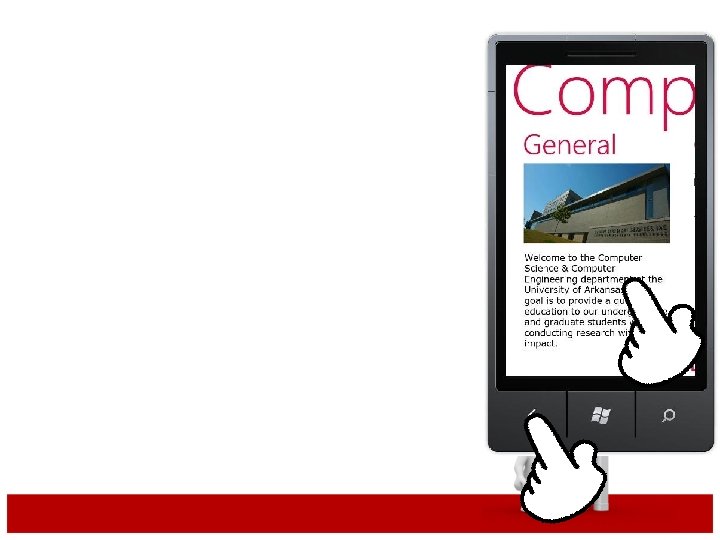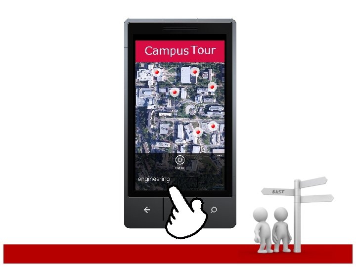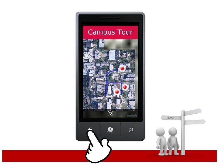 Objective • To design the software architecture and then implement a mobile application that would assist students taking selfguided tours of the university. • The functionality would include: – GPS tracking – Campus tours – Map displaying points of interest – Social networking information (e. g. Twitter) – Events calendar • Should provide intuitive and easy navigation.