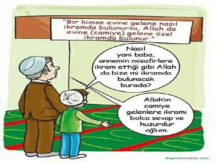 � Camiye � Güzel � Ağız gelirken güzel elbiseler giymek, kokular sürünerek gitmek, kokusuna dikkat etmek, � Temizlik � Camide kurallarına dikkat etmek, gürültü yapmamak.