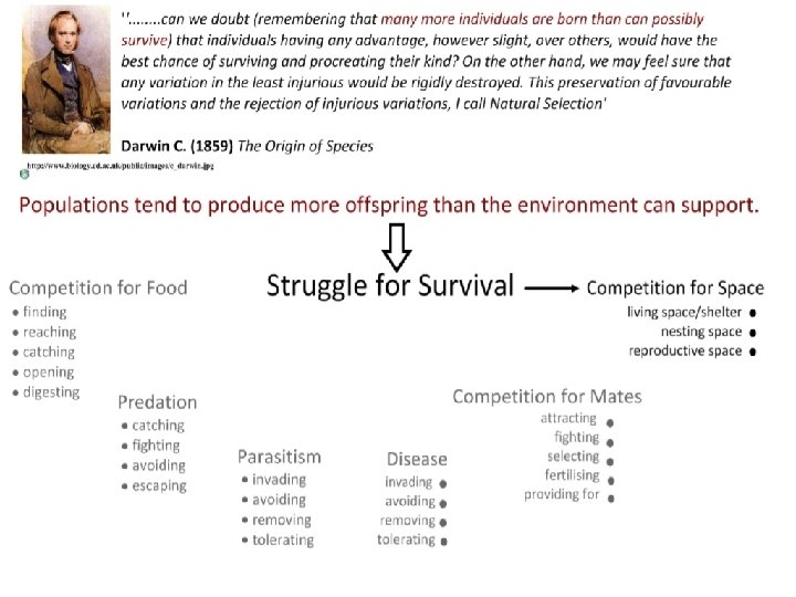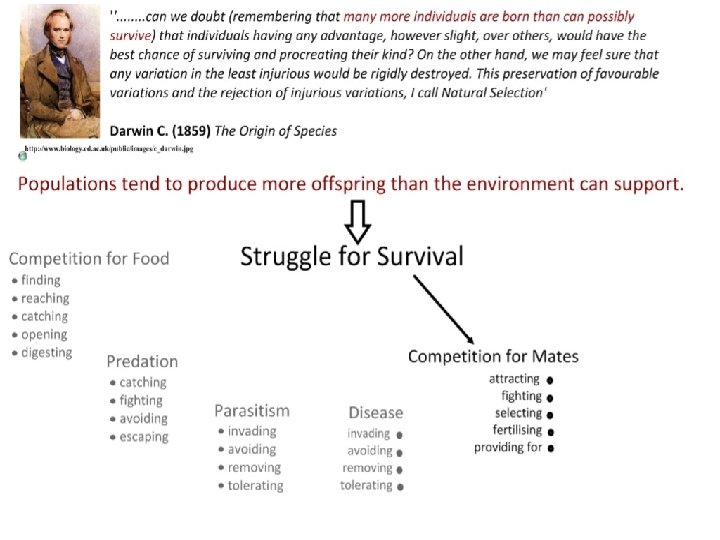 Struggle for survival Despite sexual reproduction requiring a lot of energy animals and plants often greatly overproduce the number of organisms than can be supported (struggle for survival). This occurs because there are not enough resources and results in competition between organisms. Lets get competing!!