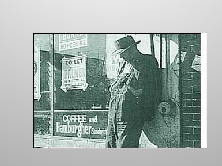 • Western farmers in Canada were also unable to survive because of the failing economy in the U. S. , less demand for their products. • Finally, in 1931 -32 the first swarms of grasshoppers began destroying wheat fields across the prairies. • Many men left their small rural farming towns (especially in the prairie provinces) and moved from city to city (towards Ontario) in hopes of finding work.