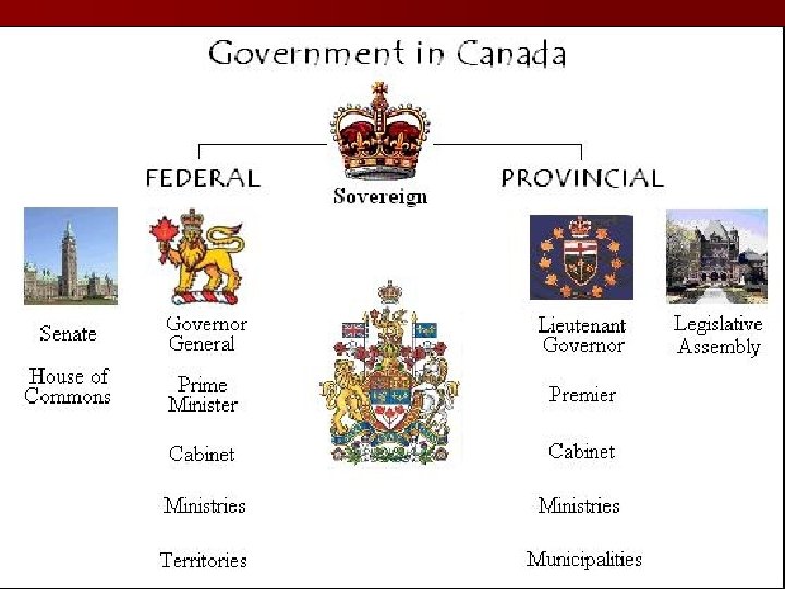 Review Questions n What type of Government does Canada have? n What type of Governmental system determines how the political power is distributed in Canada?