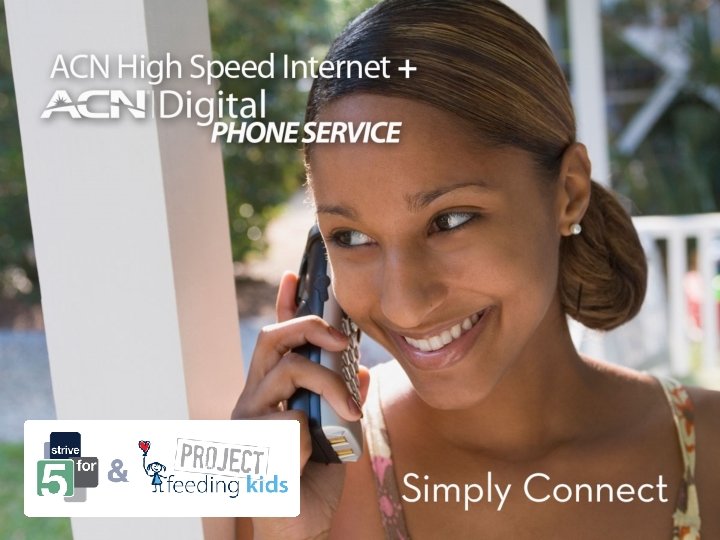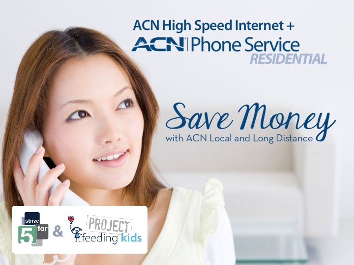 ACN Strive for 5 for Customers When you refer 5 people who sign up for the same service, you can receive your same service free and feed a child in need! + Refer 5 ACN Digital Phone Service Customers, 5 ACN Digital Phone Service Bundled with High Speed Internet Customers or a combination of both and your Digital Phone Service can be FREE! Refer 5 ACN Local and Long Distance Customers, 5 ACN Local and Long Distance Bundled with High Speed Internet Customers or a combination of both and your Local and Long Distance Service can be FREE! Simply refer 5 eligible customers of the same service, in addition to yourself, and your service can be free and you feed a child in need. It doesn’t get any simpler or more powerful than that. This can add up to hundreds of dollars of savings to you!