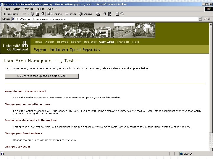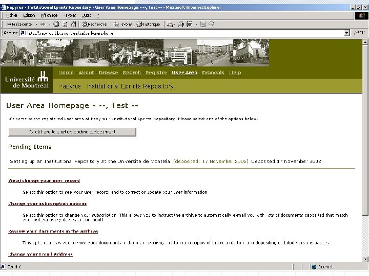 Canadian Association of Research Libraries Institutional Repositories Pilot Project Implementation of Papyrus – Institutional Eprints Repository at Université de Montréal http: //papyrus. bib. umontreal. ca