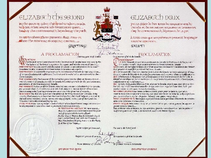 6. Official Language Rights • Recognizes the official bilingual status of Canada and equality of French and English languages 7. Minority Language Education Rights • Right to education in English or French