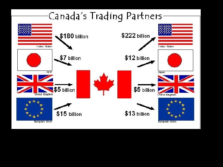 Trade helps Canada get things that we cannot provide ourselves. Importing – when goods and services are brought into a country. What kind of things are exported into Canada?
