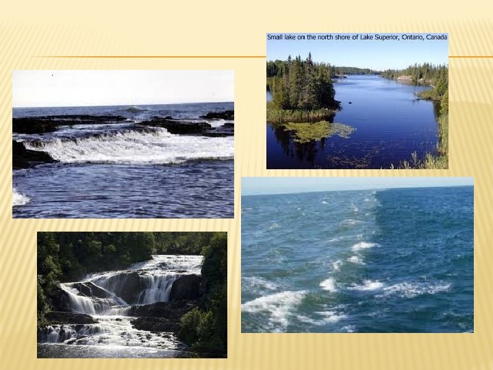 � Canada’s Lakes: � Canada has two million lakes � Great Lakes are the largest freshwater lakes in the world � 21% of the earth’s surface fresh water