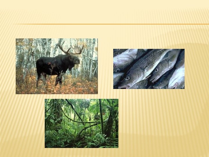 � Boreal Forest: � Made of coniferous (needle –pine, spruce and fir) and deciduous (leaves –birch, maple) trees � Animals like moose, bears, and wolves