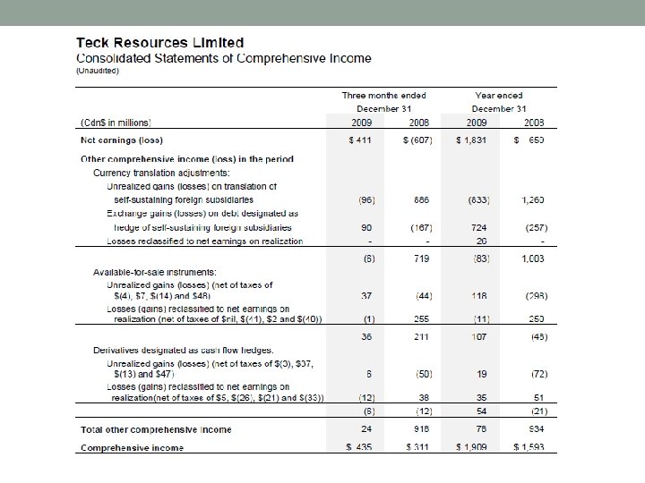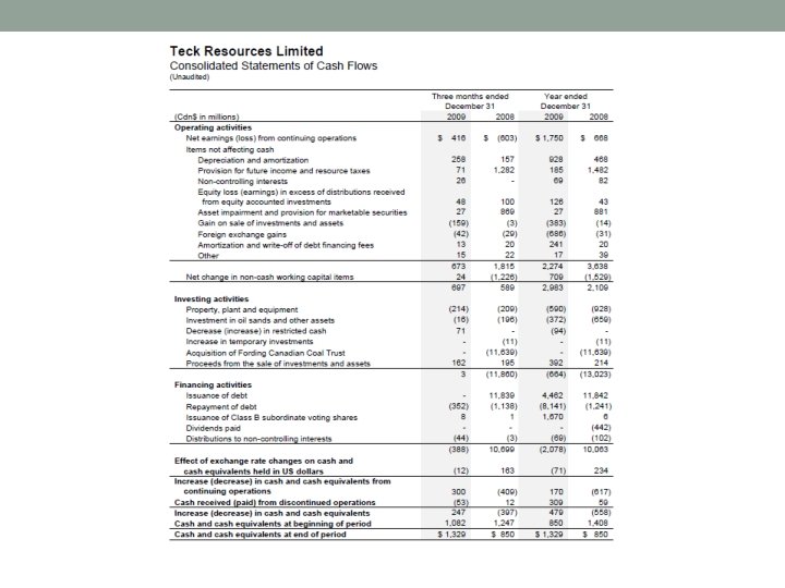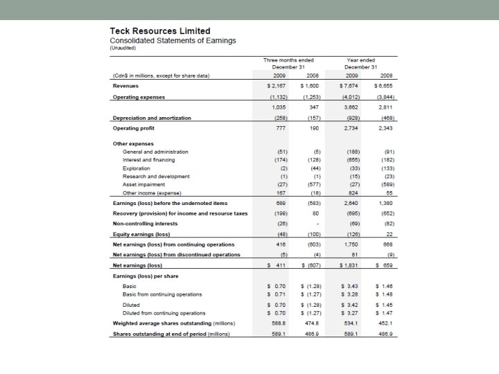Non-Core Asset Dispositions • 78. 8% interest in the Morelos gold project • Disposed in November 2009, for • US$150 million cash, approximately 1. 6 million common shares, and 12. 4 million special warrants of Gleichen • 60% interest of the Agi Dagi and Kirazli gold projects in Turkey • Disposed in January 2010, for • US$24 million, and 2. 4 million shares • Interest in future gold production from Andacollo mine sold to Royal Gold • Disposed in January 2010, • Provided Andacollo with US$218 and 1. 2 million common shares of Royal Gold Teck’s share is 90%
