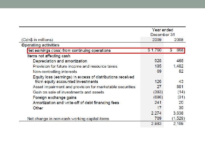 Financial Analysis – Net Earnings • Net earnings higher due to sale of Centerra gold stake • 374 M of 1099 M • Mark to market gains of 179 M on financial instruments • ~50% of net earnings from one-time items