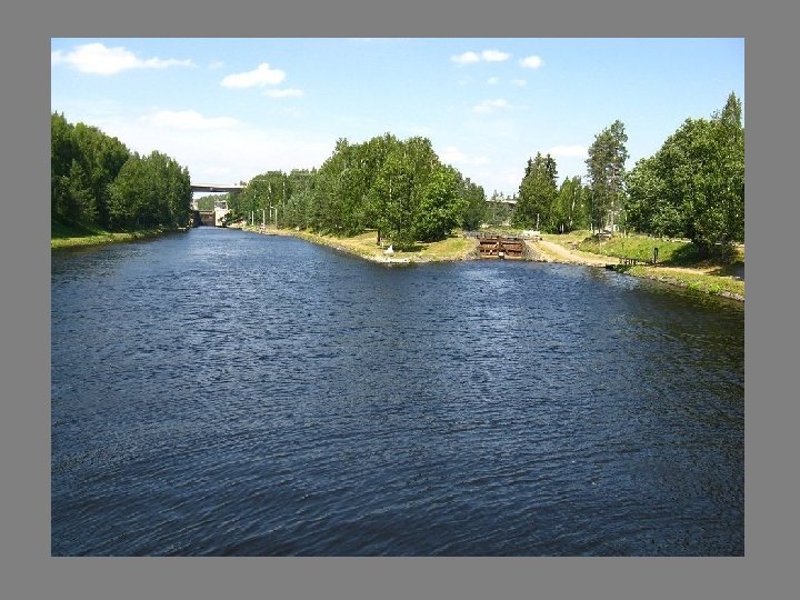 Canal de Saimaa (Finlande) Longueur : 58 km Inauguré en : 1856 Il relie le lac de Saimaa au Golf de Finlande de la ville de Lappeenranta à Vyborg situer à 76 m au dessus du niveau de la mer. Des 28 écluses, les principales sont : Mälkiä Finlande 12, 4 m / Mustola Finlande 7, 2 m Soskua Finlande 8, 3 m / Pälli Russie 11, 7 m / Lietjärvi Russie 10, 2 m / Rättijärvi Russie 5, 5 m / Särkijärvi Russie 11, 4 m / Juustila Russie 10, 0 m. La dimension maximum des bateaux est de 82 m par 12 m et 4, 35 m de tirant d’eau.