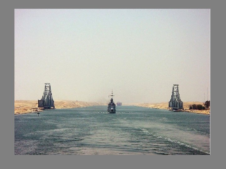 Canal de Suez (Egypte) Longueur : 169 km Inauguré en : 1869 Ce canal forme la voie maritime la plus importante du monde. Il fait faire un économie de 8 000 kilomètres de l’inde au havre en comparaison avec la contournement de l’Afrique par le Cap de Bon Espérance. Son percement a duré 10 ans.