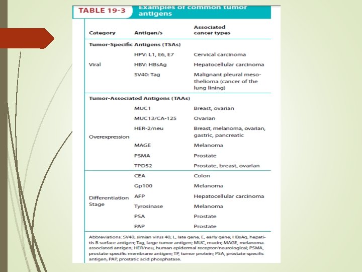 Tumor Ag: Tu specific transformation Ag (TSTA), which, is unique to tu cell & not found in normal cell. Tu associated transplantation Ag (TATA), which is not unique to tu but, may be protein that expressed on normal cell also, which are: 1. Oncofetal Ag as, * Alpha-fetoprotein (AFP), that is normally present only during fetal life so, if it ↑ in adult life, it indicate liver cancer. * Carcinoembryonic Ag (CEA) which, if ↑ in adult so, indicate colorectal carcinoma. 2. Over expression of normal Ag, as growth factor & growth factor receptor. the epidermal growth factor (EGF) receptor at levels 100 times greater than in normal cells. melanotransferrin, designated p 97.