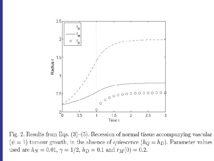 Results Three regimes of growth: • If rate of acid removal is insufficient, exponential growth followed by auto-toxicity benign tumour Occurs in avasculars and vasculars if • vascular tumour displays sustained growth and invades • Very small tumour – no growth (insufficient acid production to include normal cell death)