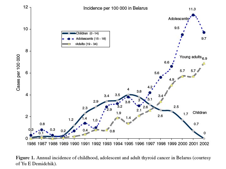 The rapidity of increased childhood thyroid cancer in the heavily contaminated areas of Belarus, Ukraine and Russia was surprising. 4 years
