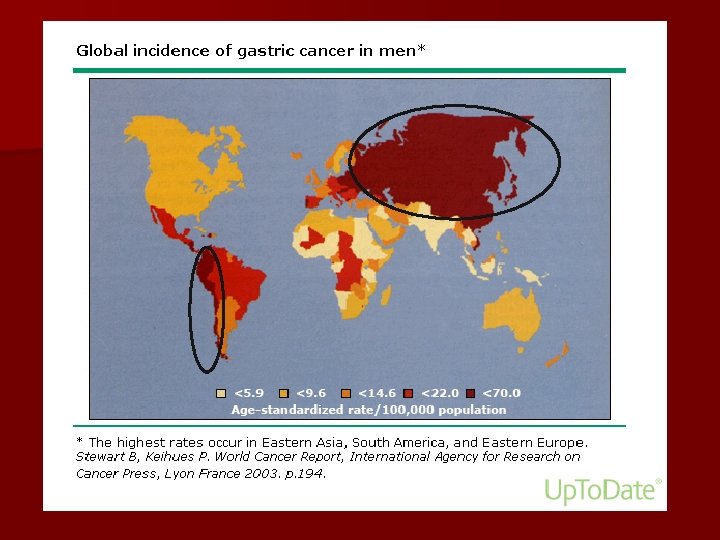 GENERALIDADES n 4ª neoplasia más frecuente en el mundo n La incidencia ha disminuido en los últimos 75 años – Mejor conservación de los alimentos, refrigeración n Diferencias geográficas – En occidente aumento de adenocarcinoma proximal y de unión esofagogástrica – Elevada incidencia en Japón y China