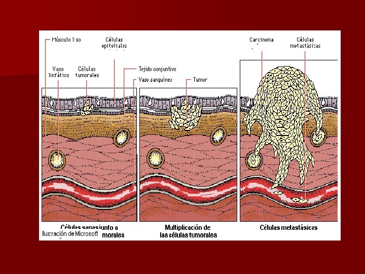n Cuando las células tumorales se separan del tumor primario y circulan a través de la linfa o de la sangre alojándose en otros órganos, se puede formar otro tumor (METÁSTASIS)