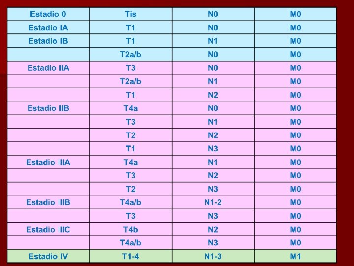 ESTADIO n Nos sirve para determinar la extensión de la enfermedad y para planificar el tratamiento. - ESTADIO 0 ESTADIO III ESTADIO IV