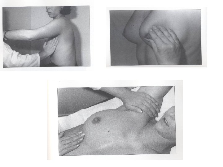 Que cher? – Ces 5 positions permettent de mettre en évidence : • les tuméfactions , nodules • les rétractions de la peau et les altérations du mamelon ( écoulement) • Changement de taille, de forme, rougeur