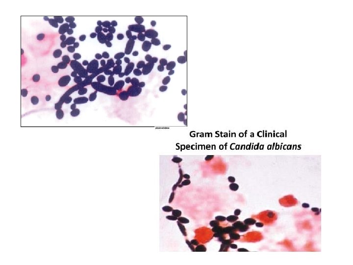 Cont… • Periodic acid-Schiff stain are also done for the demonstration of fungal elements in tissue. Esophagus, vascular invasion, blastoconidia and pseudohyphae, PAS