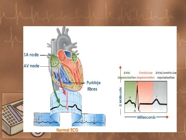 ECG Paper and Standardization • Standardization Signal • Without a standardization signal, the ECG paper is merely graph paper. By entering a signal, you place value on each of the smallest squares. • At 1 cm=1 mv each tiny square represents 0. 1 mv in height (amplitude) and 0. 02 seconds in width (duration) at a paper speed of 50 mm/sec. • The calibration signal can be changed, if necessary, to affect amplitude only.