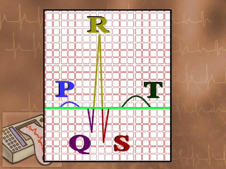 • QRS complex- represents depolarization of the ventricles • The width of QRS complex is measured from the beginning of the first deflection to the end of the final deflection of the complex • The height of the R wave is measured from the top edge of the baseline to the peak of the R-wave • The depth of the Q or S wave is measured from the bottom edge of the baseline to the lowest part of the Q or S respecively